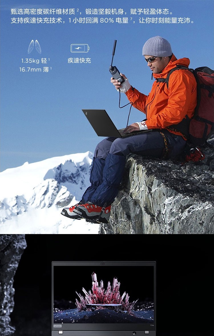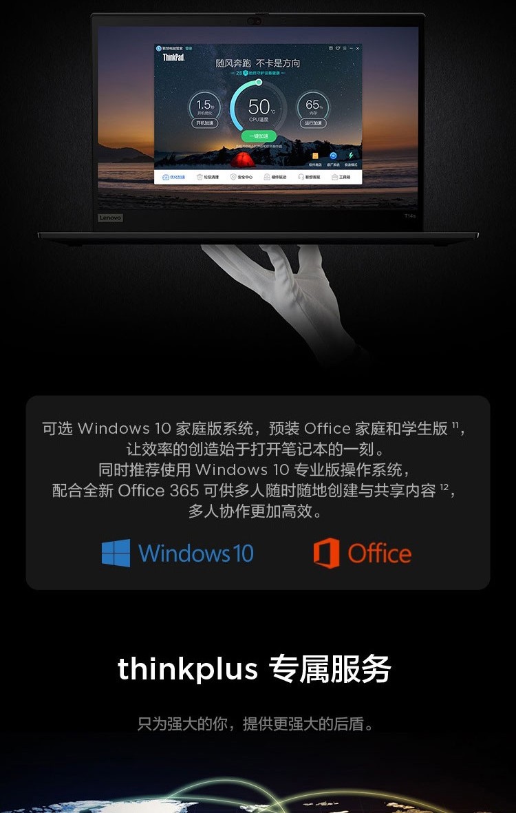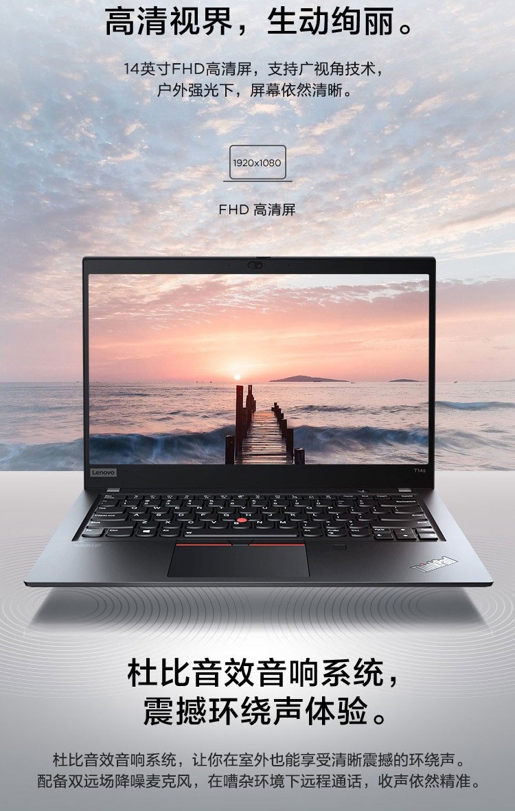 联想ThinkPad T14s AMD锐龙八核14英寸碳纤维轻薄高性能办公笔记本电脑 T14s 08CD:R7 PRO-4750U/16G/512 FHD全高清 指纹识别 Win10 WiFi6