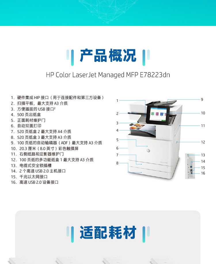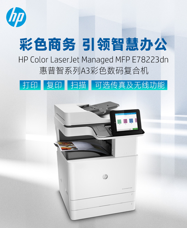 惠普 hp 78223dn 彩色激光复印打印扫描多功能一体机A3幅面