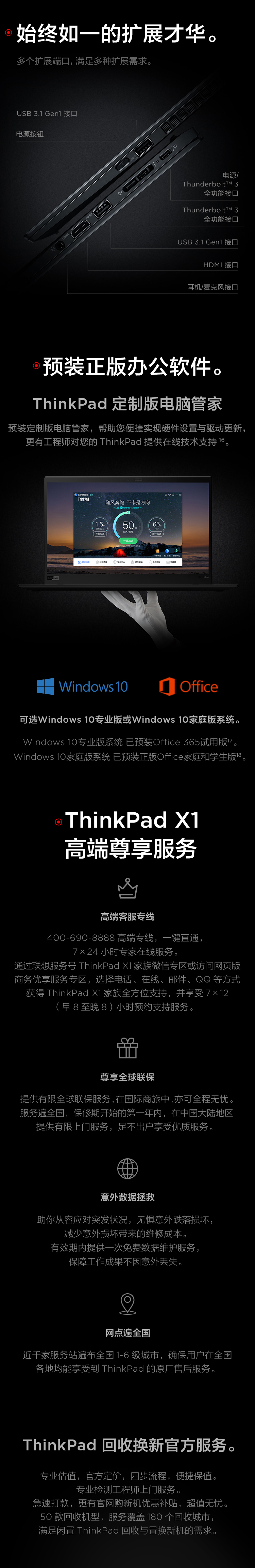 联想ThinkPad X1 Carbon 2020 7HCD 英特尔酷睿i7 14英寸轻薄笔记本电脑 十代i7 16G 512G WQHD 4G版 沉浸黑