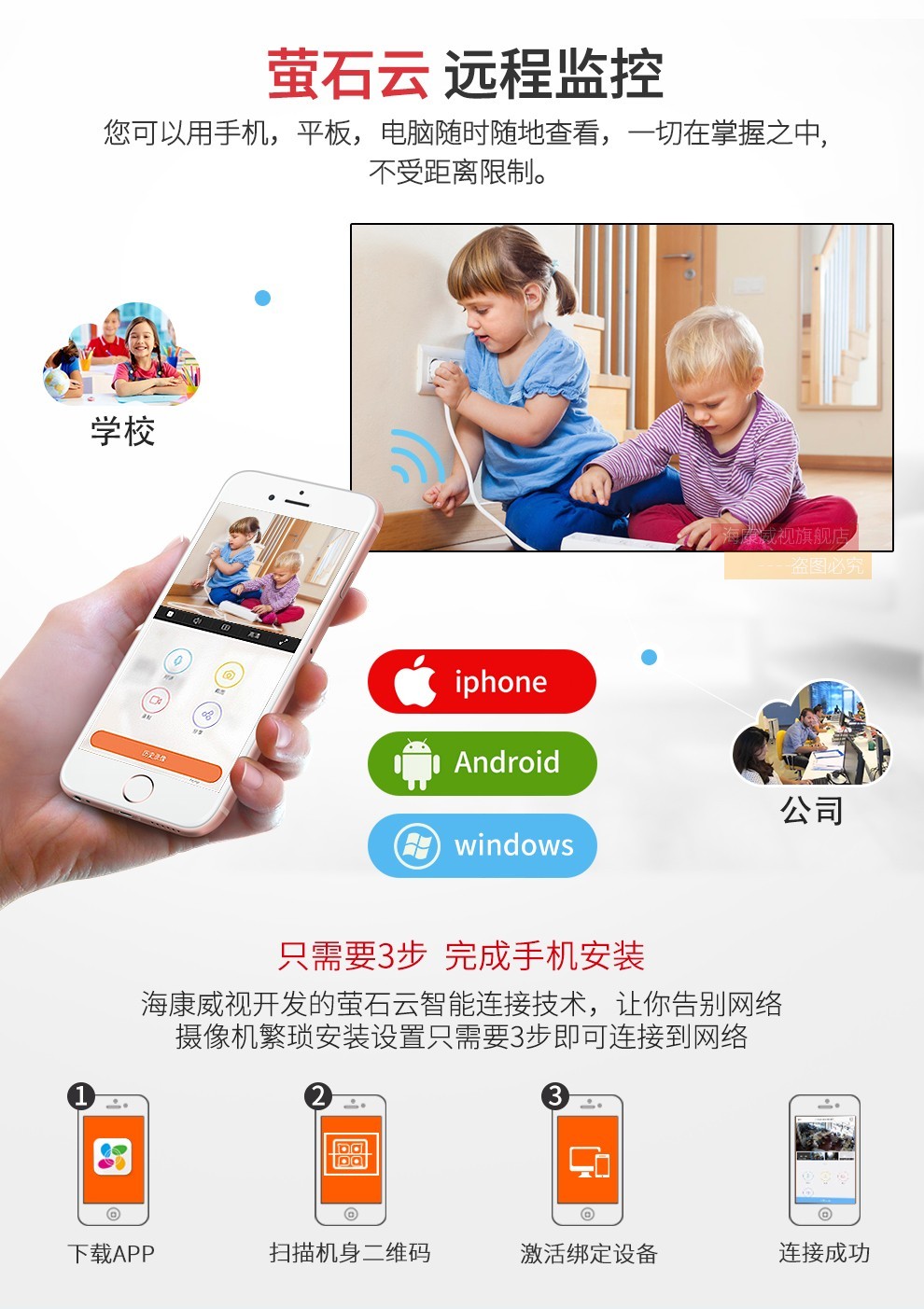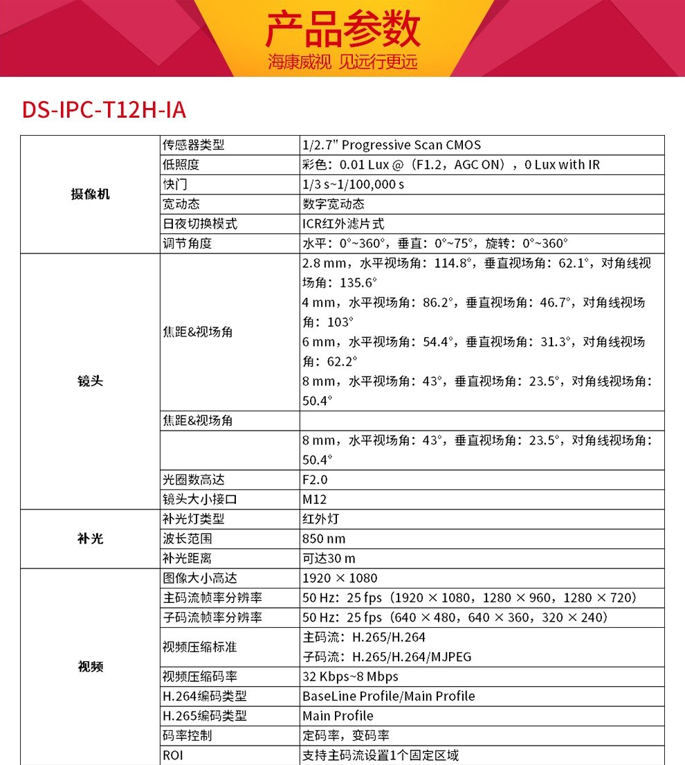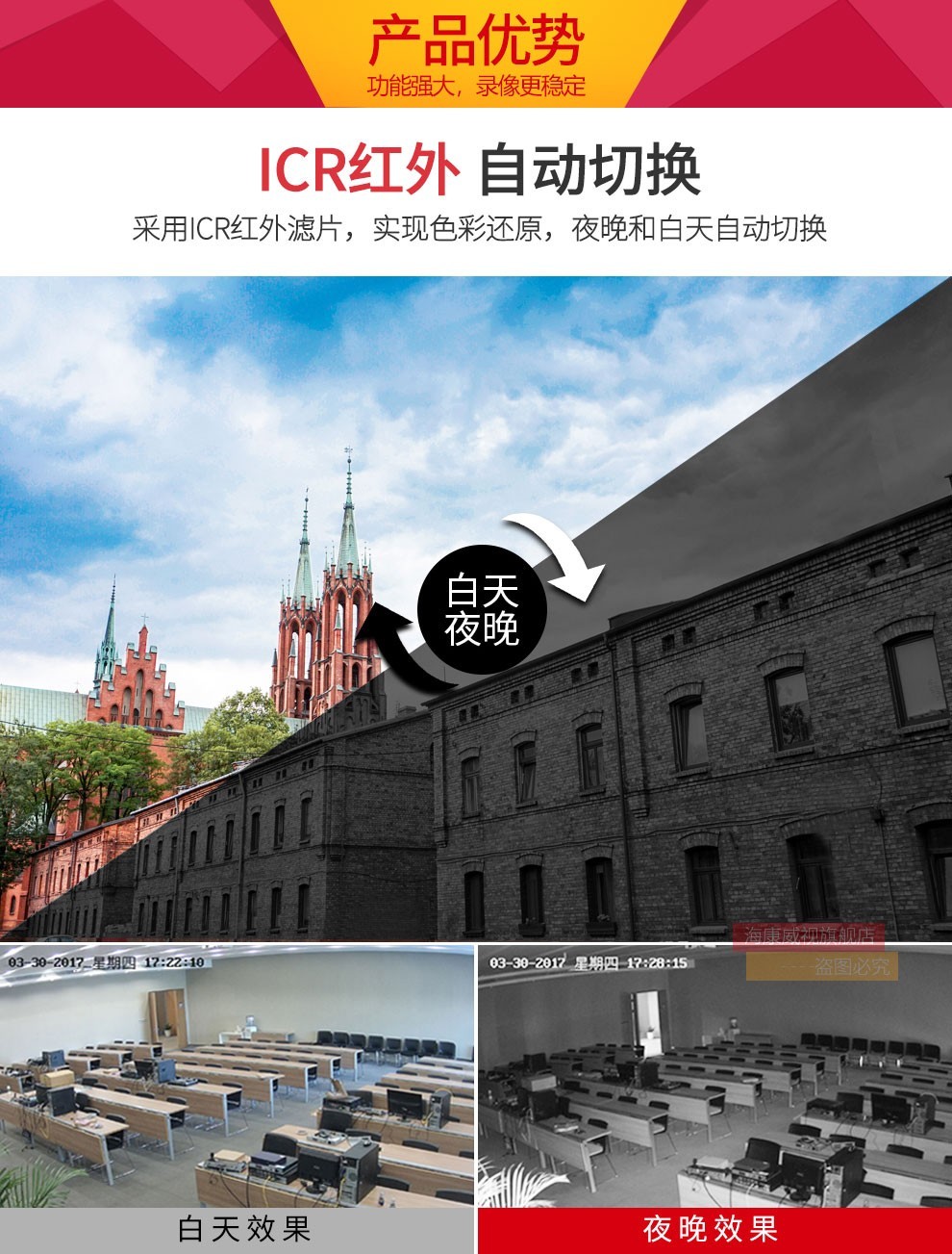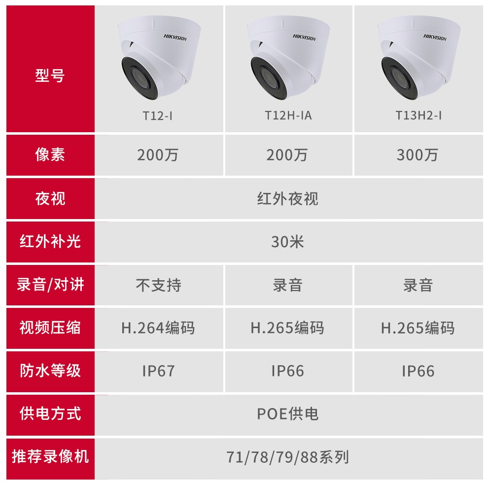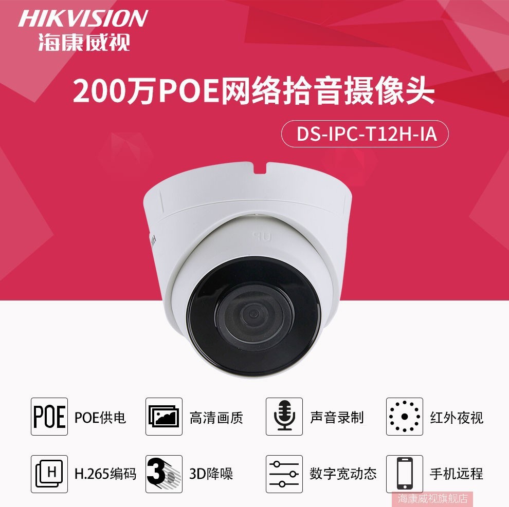 监控摄像机 海康威视(HIKVISION)网络监控摄像头红外夜视室内半球摄像机带POE DS-IPC-T13H2-I(300万拾音) 4MM焦距