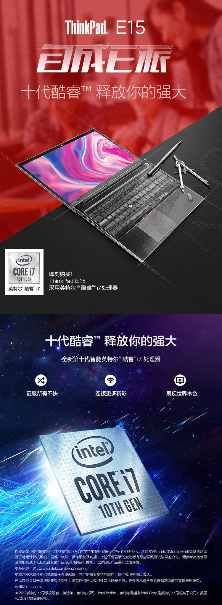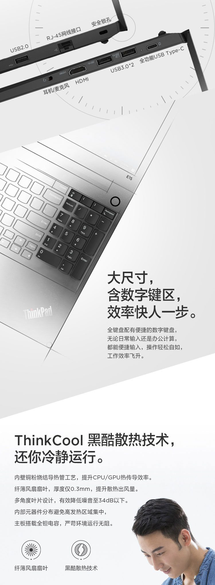 联想(ThinkPad)E15-07CD 15.6英寸商用轻薄笔记本电脑 i7-10510U/16G/512GSSD/FHD/2G独显/包含鼠标和包