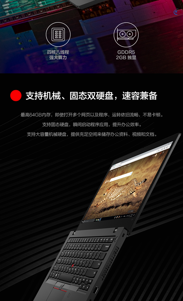 联想商用笔记本ThinkPad L14(i7-10510u/8G/1T+128G/独显/人脸识别)