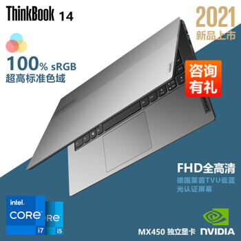 联想ThinkBook 14 2021款 14英寸轻薄笔记本电脑 【08CD】 11代酷睿i7-1165G7 独显 16G 512G 100%sRGB 高色域 标配